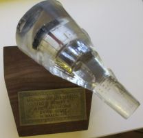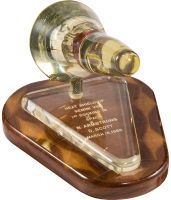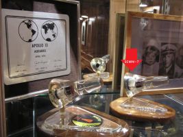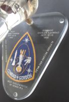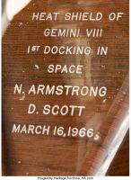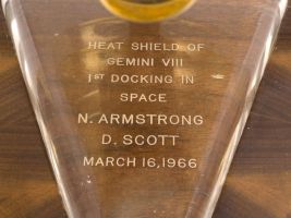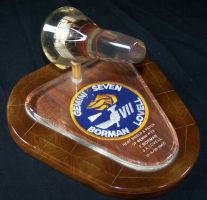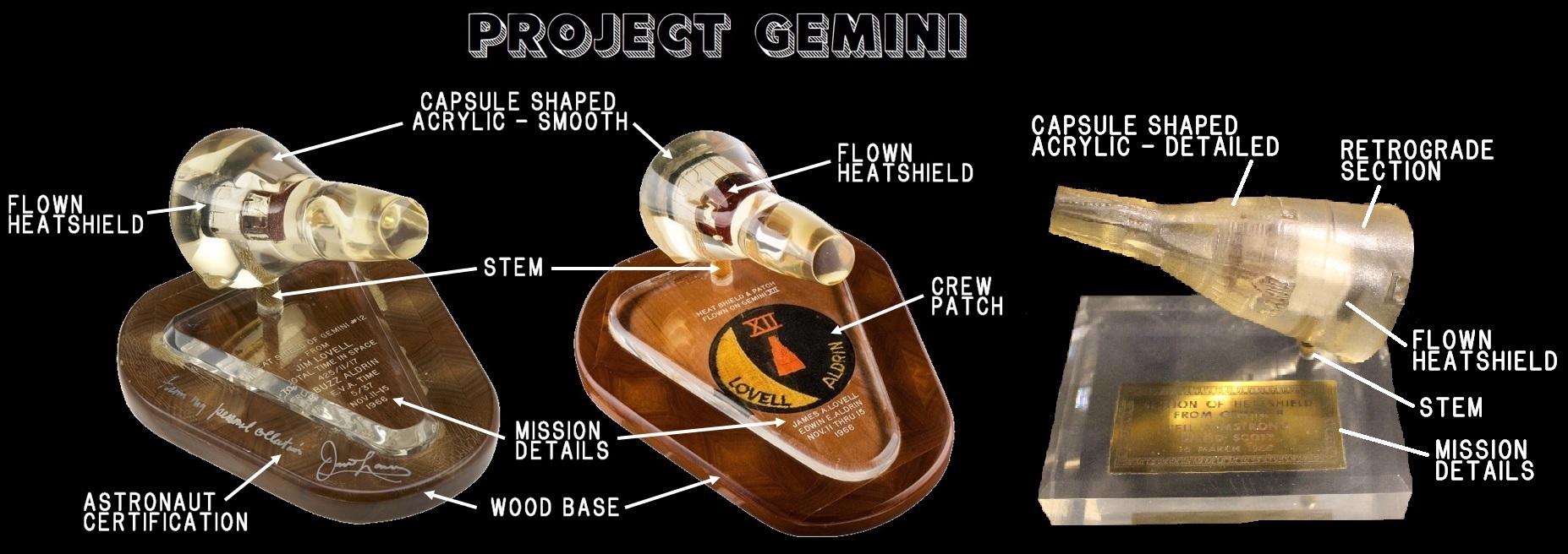 Presented here are examples of Gemini spacecraft heatshield presentations that were created in the shape of a capsule. The capsule manufacturer McDonnell Aircraft (St. Louis, Missouri) created these heatshield presentions for astronauts and a few select VIPs involved with the program. Post-flight, engineering teams took samples from the heatshield for analysis and once this process was completed, several presentations were made. Further information on the heatshield core sample process can be found here in the Project Gemini section. Two distinct styles exist: 1) Smooth and 2) Detailed as shown in the diagram below. Smooth capsules represent the overall silhouette of the manned portion of the Gemini spacecraft, with two small indentations representing windows. Detailed capsules include the retrograde section (aft of manned section) and significant features sculpted into the outer surface. Smooth capsules originally came with a hand crafted wood base, which is sometimes missing or damaged. Detailed capsules have several different base configurations for Gemini 8; for Gemini 11 they probably all had similarly designed wood bases similar to the smooth capsule presentations. The vast majority of presentations sold at auction or cuurently reside in museums originated from the collections of astronauts or McDonnell employess. For smooth capsules, it is estimated that as few as 4 or as many as 10 presentations were created for each flight. Detailed capsules have only been observed for Gemini 8 and 11. Since Gemini 8's entire heatshield was removed post-flight, it is not surprising to see more from this mission than any other. Only one Gemini 11 detailed capsule has been seen with a heatshield section encased, the others are painted like models and it is not known if any heatshield is embedded. A sub-set are those presentations containing an original crew patch mounted between the acrylic and wood base. Presentations for Gemini 12 contain a flown crew patch as described in the engraved description on the acrylic. It is presumed that the mission patches for Gemini 7 and 11 were also flown on-board but this is not known for certain at this point in time. The Gemini 8 mission patches are a common souvenir version and were not flown. These capsule shaped displays are prone to damage and detoriation if not handled with care. Avoid exposure to direct sunlight, high temperatures, and humidity extremes to protect against acrylic yellowing and wood veneer cracking. The stems are fragile and can break or crack easily. This issue was originally addressed begining with several of the displays for Gemini 6. A thicker, gold colored, reinforced (knurled) stem was introduced replacing the slimmer, silver rod type. This reinforced design was used exclusively for the remainder of the program (GT-7 through GT-12). The acrylic base slides tightly into a cutout in the wood base (not glued originally). When moving the presentation, lifting should be done using the wood/acrylic base instead of the capsule portion. As there is no prior comprehensive guide, these photos and tables are intended to encourge further discussion with periodic site updates as new information is discovered and reviewed. Futher discussions about the various types of heatshield acrylics can be found on collectSPACE. Please feel free to send in photos of presentations you've seen that are not represented here for inclusion in the archive. |