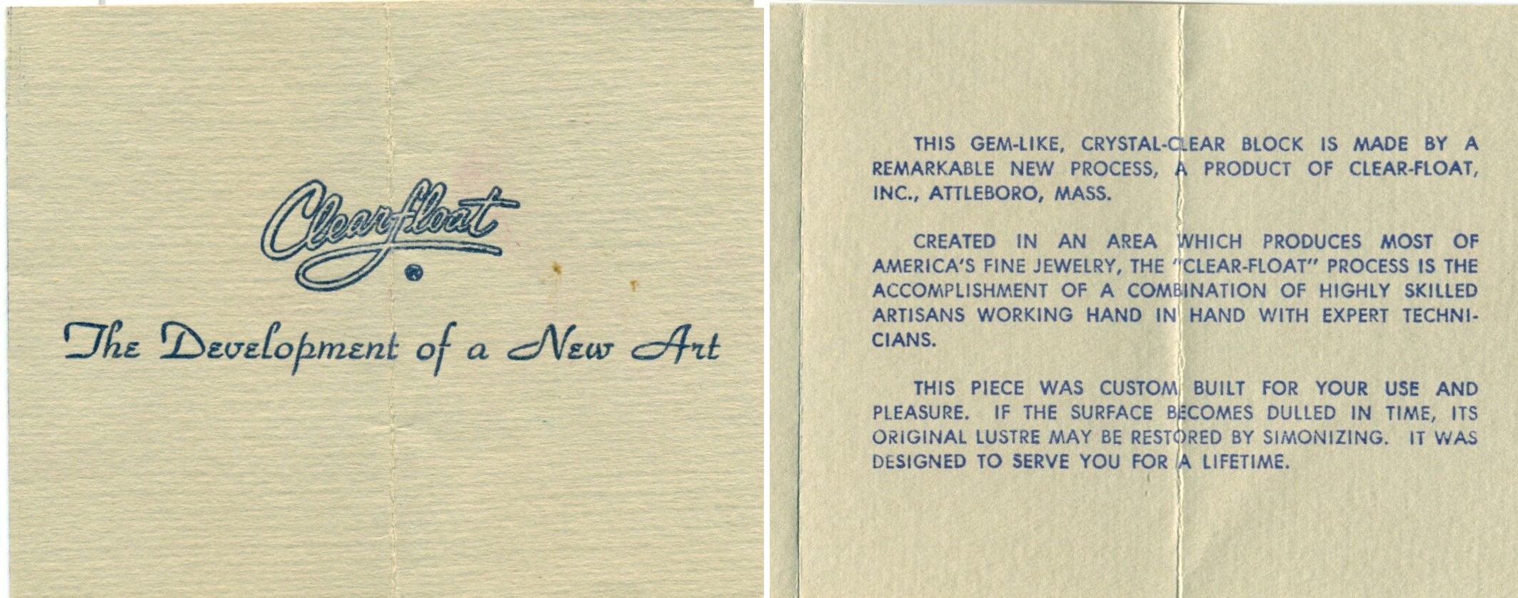 Based on surviving documentation and a few original boxes, it is known that presentations for Gemini and Apollo mission were created for NASA by Clearfloat using the specalized process described above. Examples of original boxes are shown below alongside their corresponding presentations. It is possible that Clearfloat was involved with the earlier Mercury presentations based on the many similarities presently observed, yet it is not known for certain at this time.